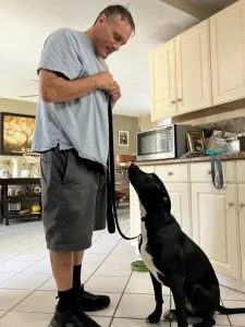 Some of you may remember Jasper the French Briard I am working with. He has has been doing well but lately had a few setbacks with his owner. He owner notified me quickly and we are now tweaking his behavior modification program. Some breeds of dogs that have very powerful herding instincts can be very challenging to redirect. Jasper needs a little more work channeling his instincts into ball play and other compatble behaviors. Jasper enjoys biting the leash and jumping on his owner when he gets bored or is idle for a period of time. This is quite problematic since Jasper only directs this behavior towards his owner making it difficult for me to observe or work on! LOL. I have several different ideas on how I can approach and correct this last but very weak area. Jasper is a very clever dog and a little too smart for his own good! LOL I look forward to going forward and grafting the great behavior he has with me and my family onto his owner.
